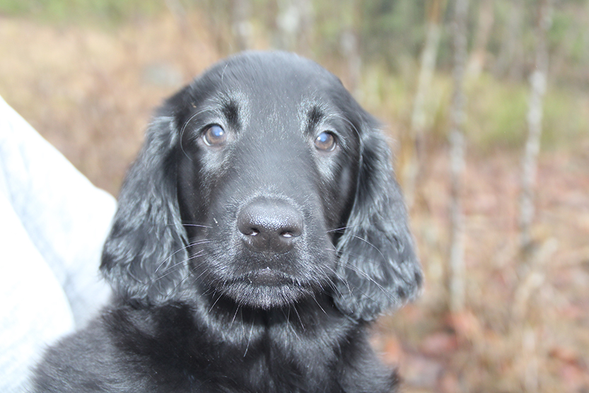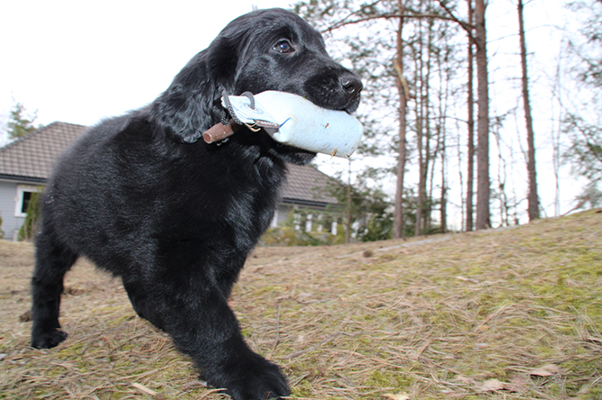 Denne skjønne frøkna blir her. Klarte ikke gi henne i fra meg Hun er kullets apekatt å jeg elsker jo ablegøyene hennes. Vi har begynt så smått med lydighet treningen og jakt treningf å hun synes det er kjempe gøy . fuglevinge er også spennende . På bildet rett under er hun 8 1/2 uke :-)På bildene under er hun 7 1/2 uke . Nederst er hun 6 1/2 uke