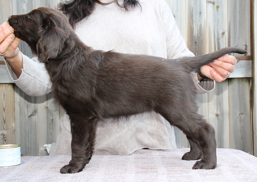 Det brune gullet som er datter av Kimmie bor til daglig sammen med Nette og Tomas og for ikke glemme Tia Oda Vilma og Teddy :-) Hun er Nettes siste tilskudd for jakt og utstilling. Blir så spennende å følge denne skjønne frøkna fremover. Hun er som sin mor en dame med 4 ben godt plantet på jorden :-) På bildet over 4 1/2 mnd - På bildet under 7 uker gammel :-)