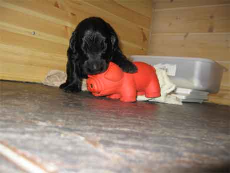 25.10.05.Her er Zorro & Zita. 5 uker er trollene blitt nå. I dag har vi klippet klør ,veid og alle har fått mark kur. De måtte jo få noen nye leker i belønning. Det var veldig populært.