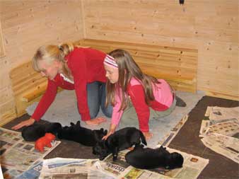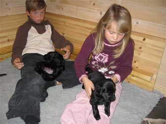 21.10.05.Her er Zorro & Zita. I dag har vi hatt besøk av familien Løvestam igjen. De fikk sjokk når de så hvor mye som har skjedd på få dager. Så nyt valpe tiden når dere får valpen hjem. Den går altfor fort.