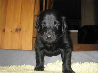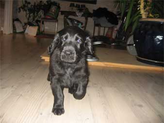 30.09.05.I dag glipper alle, unntagen en med øynene. Så nå skjer det mye fremover. Kellie er en rolig og samvittighets full mor. Det er ikke mye lukt av bæsj som går hennes nese forbi. Da er det full fart inn for  å starte rengjørings jobben. Her er Kelly en tur på gulvet. Det er forløpig en mellomting mellom å krabbe og gå.    |