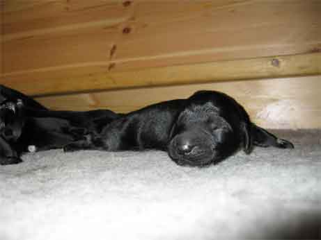 08.11.05. I dag har vi vært hos veterinæren å fått Id merking, helse sjekk , og vaksine. Han hadde fått tak i litt av den gamle typen med død vaksine så derfor fikk vi vaksinert de. Helhets vurderingen på kullet er MEGET GOD. Trollene holdt god konsert i bilen de 45 minuttene det tar å komme dit. Vi hadde med bomull som vi puttet i ørene. De var slitne på veien hjem så da sov de.  Heldigvis. I kveld skal de få mark kur så dette er dagen for helse. Vi har tatt bilde av alle etter turen nå og alle har fått sine riktige navn. De er trøtte nå og det var ikke lett å få knipset noen søte bilder. De sovnet omtrent stående. ( Må bare skryte litt til slutt. Av-Zan-Iaz Drømmende Brum tok sin andre første premie på blod spor i dag ,snart 10 måneder gammel. Se resultater.)