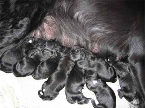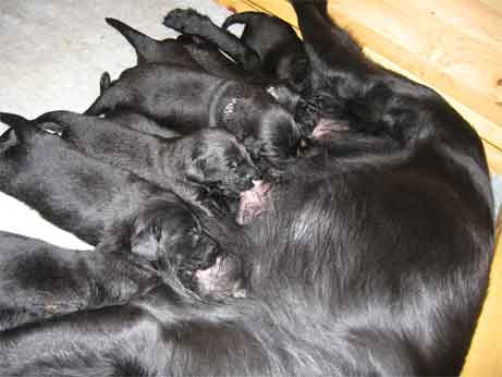 22.09.05 Nå er trollene blitt 2  døgn gamle. Når Kellie "slipper" melken så ser vi halene heiser seg i en bue på alle  ,og de slurper i vei. Kellie er fremdeles mest hos barna sine. Ville ikke være med på tur i dag heller. :-)