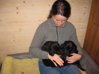 24.10.05. I dag har Marita vært her på besøk igjen. Trollene storkosa seg med oppmerksomheten. Kl. 18 hadde vi hundetrening ,og hva er mer naturlig en å få igjen varmen i valperommet. Inge og Renate mimret over hvor liten Frida var for noen måneder siden. :-) Her er Lady og Aron.