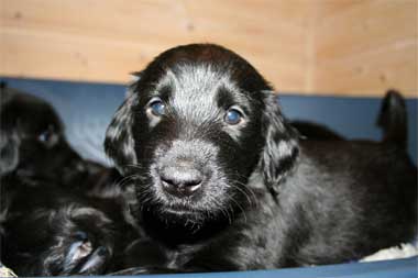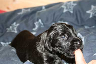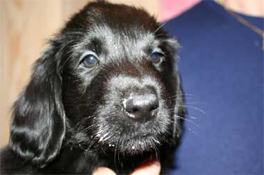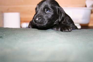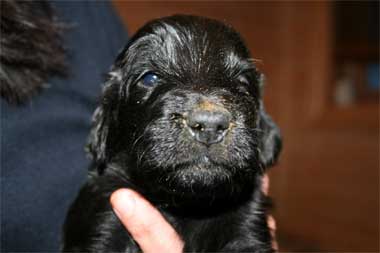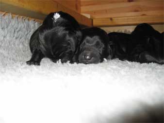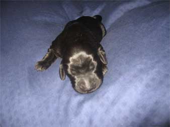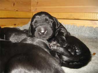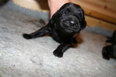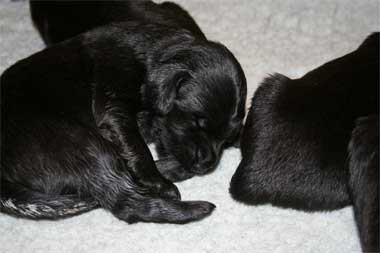11.01.07. Nå begynner snart øynene å åpne seg. De åpner seg fra ca 8 døgnet til 14 døgnet. Valpene kan ikke se så mye med en gang .De har blå øyne i starten. Her er Chico & Gjøa.