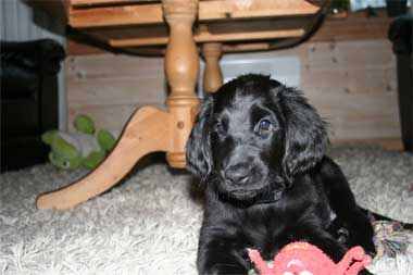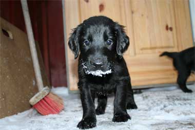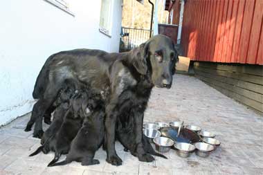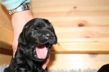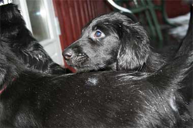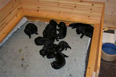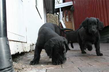 13.02.07. I går var jeg i Sverige og hentet en hannhund som vi skal låne til neste kull. Så i dag har det vært travelt her med parring ,valper og løpetider. Dogge er forøvrig en kjempe herlig hund. Han bryr seg døyten om alle de små flattene som er i huset her. Det er verre med Tia som har løpetid. Henne kunne han nok gjerne bli bedre kjent med. Små trolla sitter å ser med store øyne på den nye "helten" som er kommet i hus her. Her er Leo og Frøya.