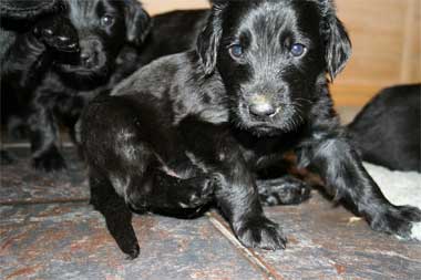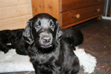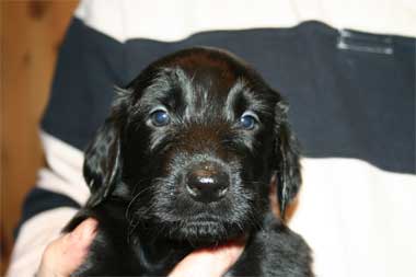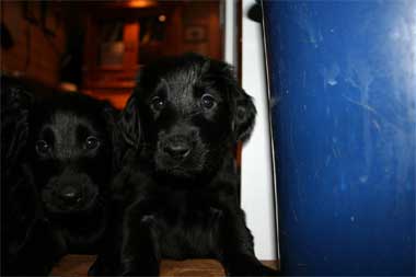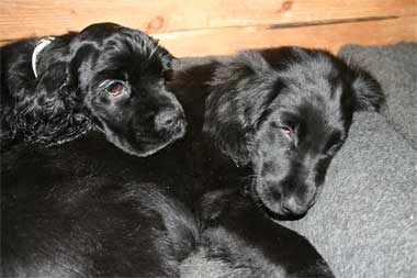 16.01.07. I dag skal vi flytte alle ned på valpe rommet ved siden av stua. Det er som en mauer tue når de våkner å fyker rundt. Vi skal klippe klørne på alle i dag. Det er ikke noe jeg gleder meg til. De har jo ikke tid til å sitte stille når jeg tar i de. Leter etter mat overalt. Her er Balder & Gjøa.