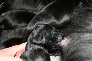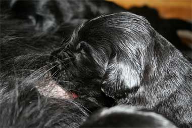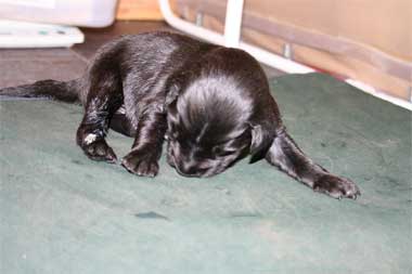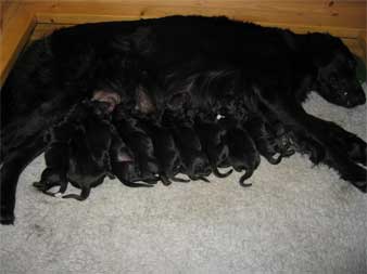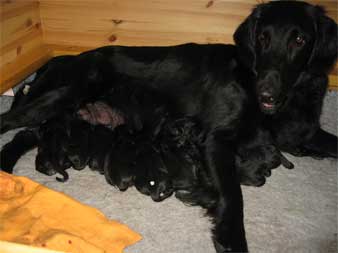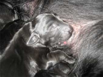 04.01.07. Natten har foreløpt rolig og fredelig. Selv for meg som er fryktelig nysgjerrig å ligger helst med hodet ned i valpene hele tiden. Klarte faktisk å sove mesteparten av tiden ,med noen bråvåkninger hvor jeg telte å ja da alle var der enda. Her er Kellie med sine søte troll og så er det Mac som drikker melk.