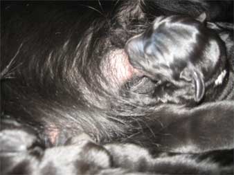 09.01.07. Trolla vokser så vi nesten ser det. Det er kjempe trangt når de skal ha melk nå. Vill krig om riktig pupp. Kellie har masse melk så alle får nok og sovner mette og fornøyde. Her er Chanel & Birk.