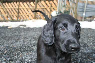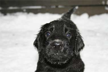 25.02.07. I dag har første mann flyttet ut. Frøya har blitt med sin nye familie i dag. Det er alltid vemodig når de flytter , men de søker så mye oppmerksomhet nå så vi skjønner jo at det er riktig. Vi var i 50 års lag i går kveld ,og da var Wibeche barnevakt her. Det var litt deilig å gjøre noe helt annet. Det som ikke var deilig var klokken 7.30 i dag morges hvor valpene er veldig våkne og skulle ha mat. Phu så det var jo bare å stå opp og sette i gang. Så var vi på skitur med de voksne . Så når klokken var 10 så hadde vi gjort en hel del allerede. Det skal bli godt å sove til natta nå. Fetter Cinco har også kommet i dag. Han skal være her mens familien hans er på ferie. Her er Birk & Chico.