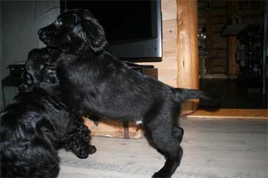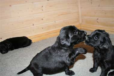 16.02.07. Nå begynner det å nærme seg at trolla skal til nye hjem. Huff det er like fælt hver gang. Selv om vi vet og skjønner at de får mye mer oppmerksomhet som alene valper en her hos oss hvor det 10 som søker kos. Her er Chico og Chanel.