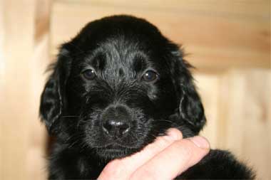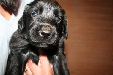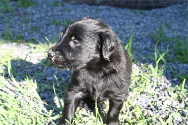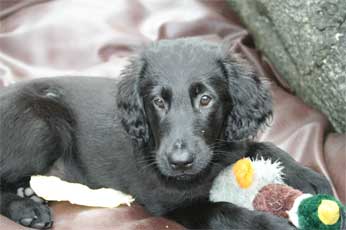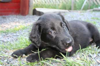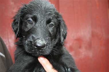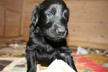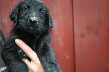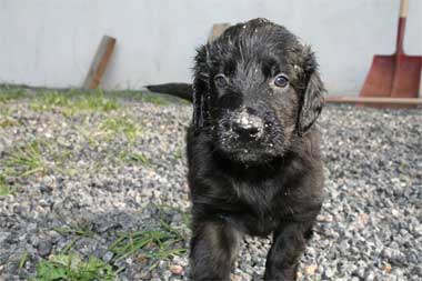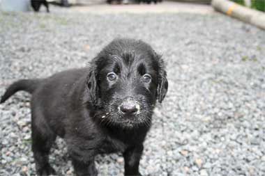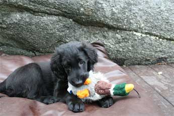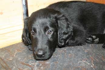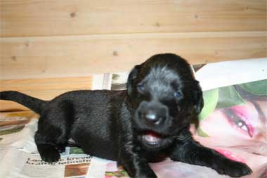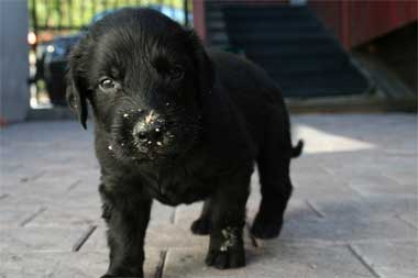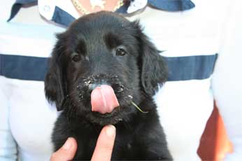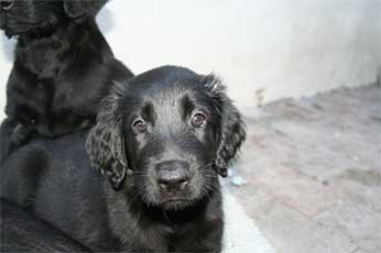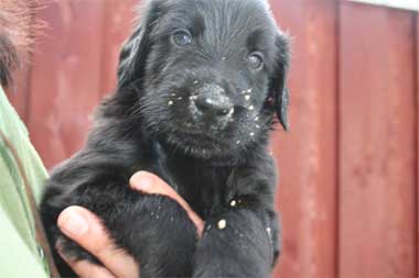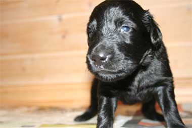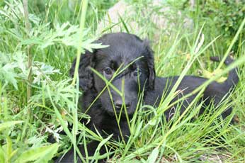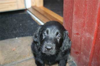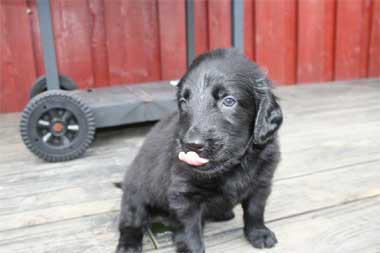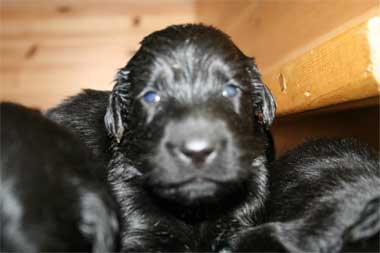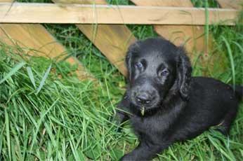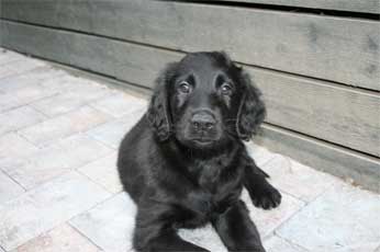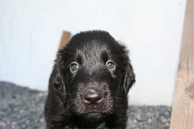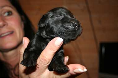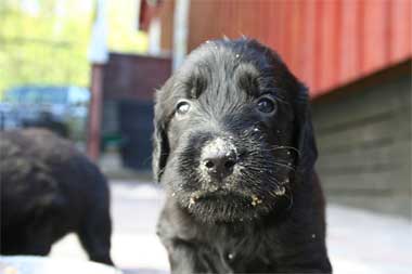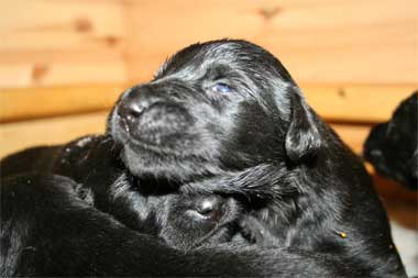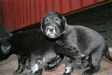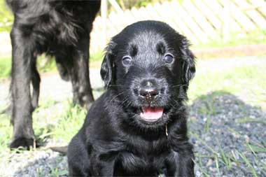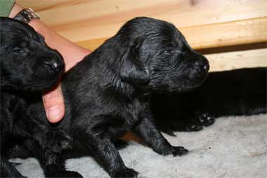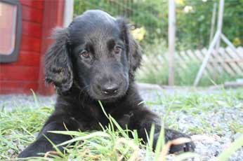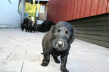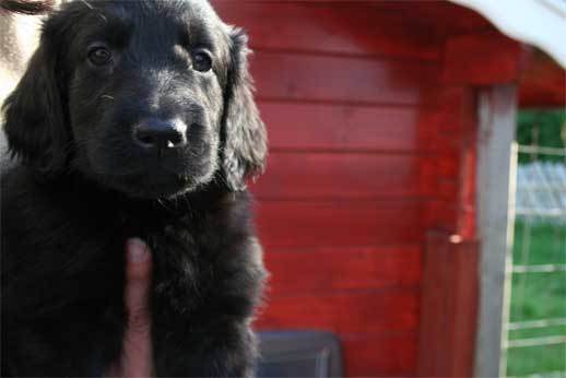22.04.07. I dag har vi hatt valpetreff her for Glimrende gjengen. Det er helt utrolig at disse små søte pels dottene skal bli slike flotte flat valper etter hvert. Ewita tok det med like stor ro som alt annet at gårdsplassen var full av masse små tante barn med eiere. Her er Teo og Pia.