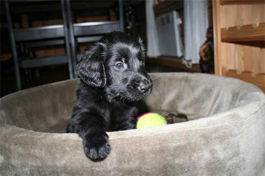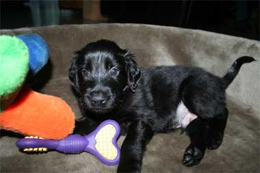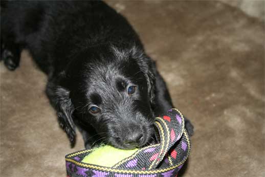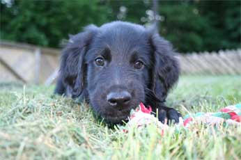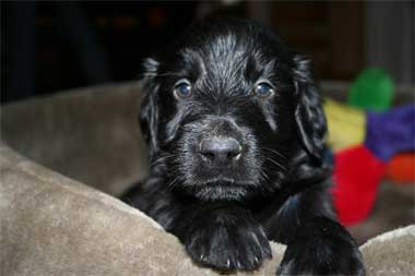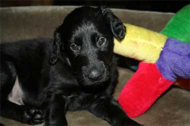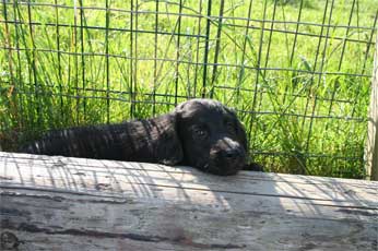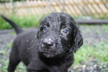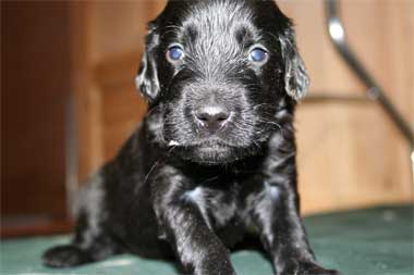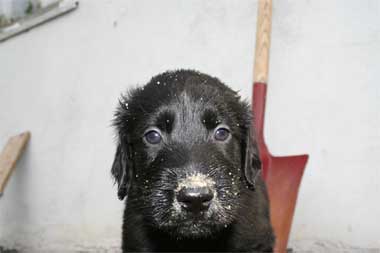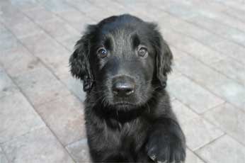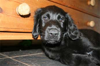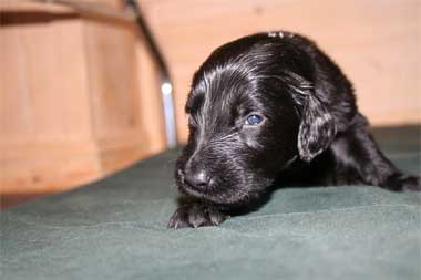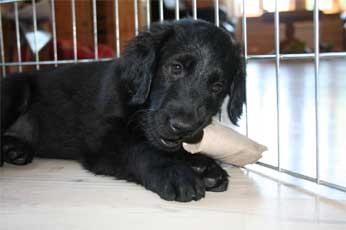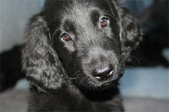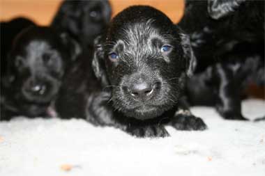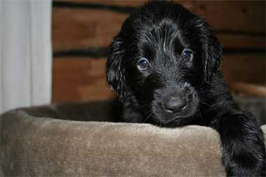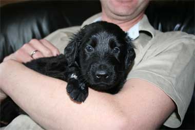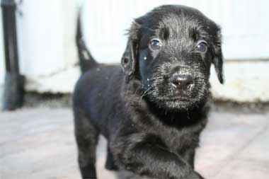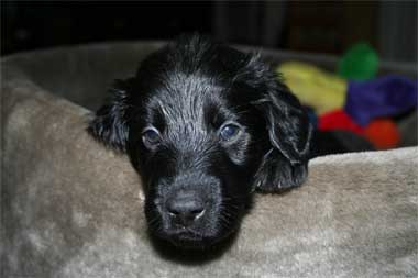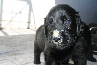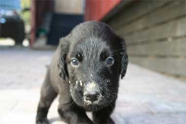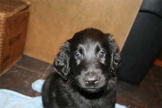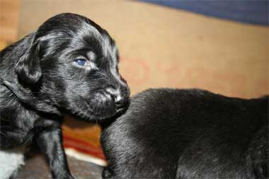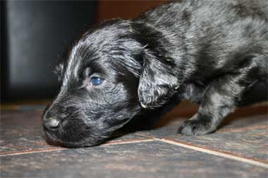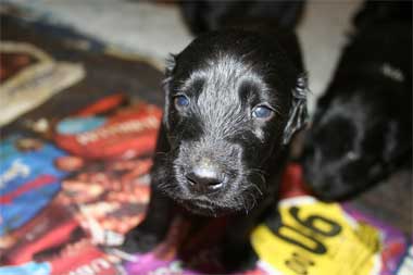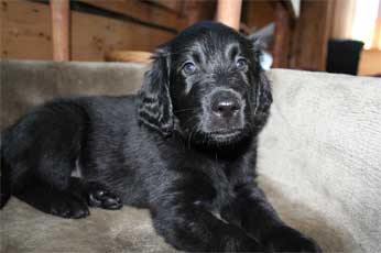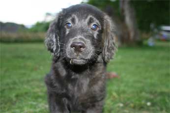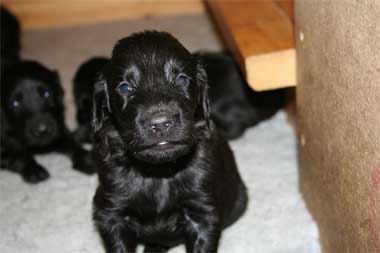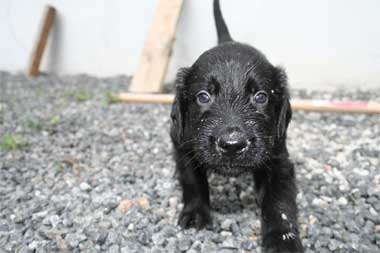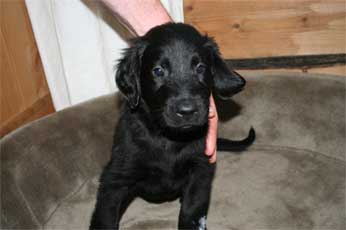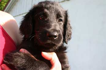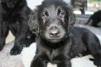22.04.07. I dag har vi hatt valpetreff her for Glimrende gjengen. Det er helt utrolig at disse små søte pels dottene skal bli slike flotte flat valper etter hvert. Ewita tok det med like stor ro som alt annet at gårdsplassen var full av masse små tante barn med eiere. Her er Teo og Pia.