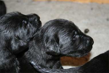 15.05.07. I dag har trolla blitt 4 uker gamle. Nå begynner man mer å se at det er forskjellige personligheter som dukker frem. Blir spennende de neste ukene å se utviklingen på alle sammen. Det er noen nydelig kompakte valper alle sammen. Her er Nala og Maya som har spist. Det ser ut som om de har brukt snuten som skje.