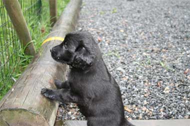 11.05.07. I dag skal vi åpne så valpene får hele rommet. De søker ut nå ,og trenger flere utfordringer. Flott med masse besøk nå. Sosialiseringen er nå viktig . Her er Grappa og Teo.
