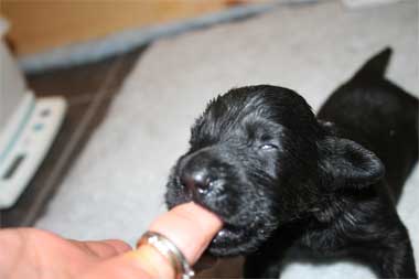 30.04.07. Det er blitt en utrolig fart i trolla i løpet av kort tid. Nå kryr det av valper rundt i hele kassen når de værer at Ewita kommer inn i rommet. De sutter på alt de får tak. om det er et øre eller en hale det er det samme. Her er Alicia og Mikas.