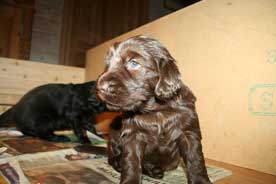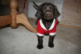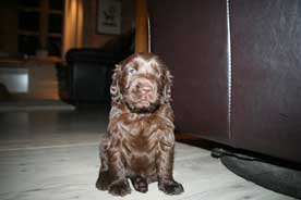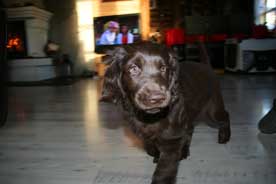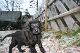 10.12.08. I dag har gjengen blitt 5 uker. Da er det dags for ny mark kur og ny klo klipp. Phu.... Ellers så funker de i 100. De er flinke til å gå til døren og følger jeg med så havner det meste ute. Det er helt utrolig hvor fort de lærer. Vi måtte gjøre om hele kassen i stua i går. Jeg plukket valper som hadde hoppet over hele tiden. Så fort jeg hadde puttet en oppi og begynte å snu meg for å gå så var den jammen over igjen. Men nå er det nytt høyt gjerde slik at vi er sikre på at de sitter trygt når vi ikke følger med. Greit i forhold til ledninger som kan være farlige.Vi har begynt å snakke om jule tre , men.... Det er kanskje ikke det lureste i år. :-) Her er Selma og Burre i farta.