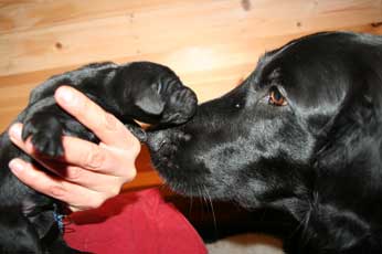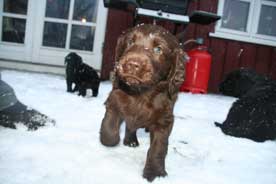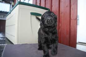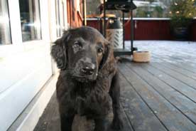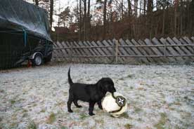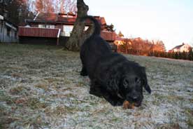 01.01.09.Godt Nytt år ønsker Eah & Kira til alle :-) I dag flytter Heena hjem til Hanne & Roy. Tenker det blir rart i å ikke ha noen andre 4 bente å plage. Kira blir her en uke eller to til . Hun skal bare bli litt tyngre før hun får lov til å få sin egen familie. Begge jentene er kjempe flinke til å si i fra at de må ut nå. I dag var det litt varmere så da var det veldig gøy å få være lenger ute. Nytt års racketene gikk det bra med alle de på 4 her i huset. Verker voksne eller valper brydde seg døyten om at det smalt litt inni mellom.