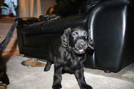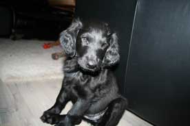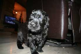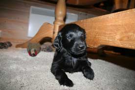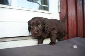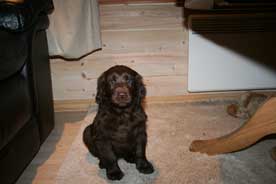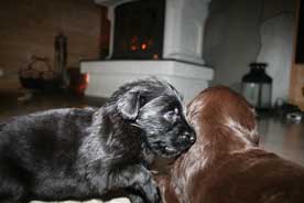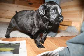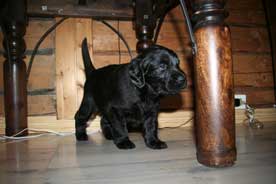01.12.08. Trolla blir det bare mer og mer liv i. I går så var det full undersøking av stua. Kjempe spennende å sjekke hva som er rundt hvert hjørne. Nå er det ikke lenge før vi begynner å ta de ut etter mat. Dette er for å lære å tisse og bæsje ute. Og for ikke glemme....At vi slipper dette inne :-) Her er jente nakke sammen med Cindy og så er det Burre på tur under bordet.