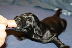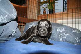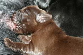 09.11.08.I dag har Kjell & Lhea reist på utstilling og lydighets prøve. Vi venter i spenning på dagens resultater. Små trolla & jeg koser oss her hjemme. Trolla & Cindy hilser forresten til bestefar Oddvar som har bursdag i dag. Tenk nå har de blitt 4 døgn allerede. Nå begynner vi å glede oss til de åpner øynene som skjer ca fra 7 - 14 dagen. Da kommer sakte og sikkert hørselen også. Selv om jeg koser meg med å små pludre med dem så hører de ingen ting enda. Kanskje det er like greit så mye som jeg skravler innimellom. :-) De første 2 - 3 ukene er egentlig bare en forlengelse av foster stadiet. Hvis mamman skulle båret de til de var mer ferdige så hadde hun ikke klart å finne seg mat i vill till stand. Naturen er ganske så flott laget. Men her i hvertfall jente nakke & jente rumpe.