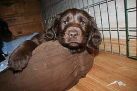 24.11.08. Det er så man nesten ser at de vokser. Det er så mange små ting som skjer fra dag til dag nå. Alle har begynt å småleke med hverandre. Men når man skal bite naboen så er man jo så ustø enda at man fort detter over ende uten å få tak i det man vil. De har så vidt begynt å trekke ut mot kanten for å tisse nå. Så nå må vi snart åpne kassen slik at de kan gå ut av sengen sin for å gjøre i fra seg. Tar vi vare på denne gode egenskapen så er det mye lettere å få de fort stue rene. Ingen har vel lyst til å ligge i sitt eget tiss. :-) Her er Burre som kommer med en kjempe gjesp .Så er det eena som titter seg rundt for å se om det er noe galt hun kan finne på.