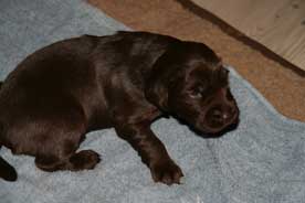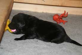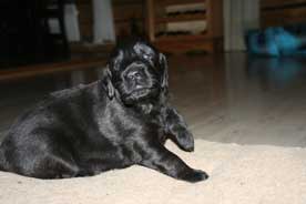 19.11.08. I dag har vi klippet klør for andre gang. Det er deilig å være ferdig med. De vokser så fort og blir så skarpe at det må jo til. I går kveld lå ale trolla på et teppe foran peisen samen med oss som så på Tv. Cindy stor koser seg med stue valpene sine. Hun var å hentet ballen som hun trillet bort til de men det skjønte de jo ikke enda da. Her er jente nakke som traver rundt på jakt etter melk og jente rumpe.