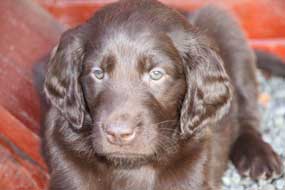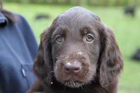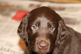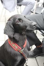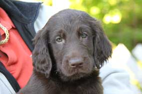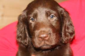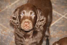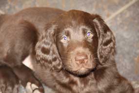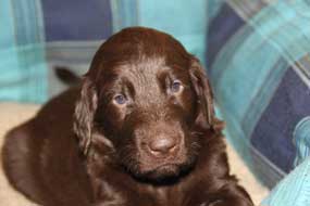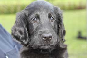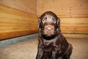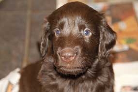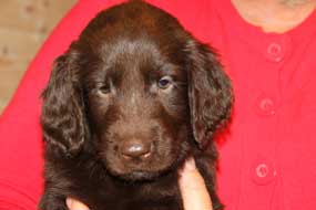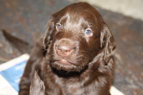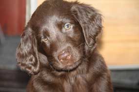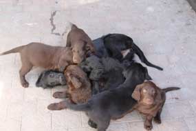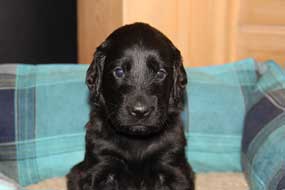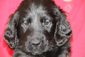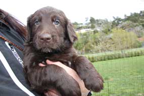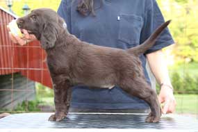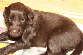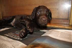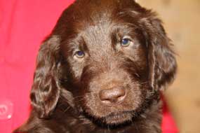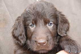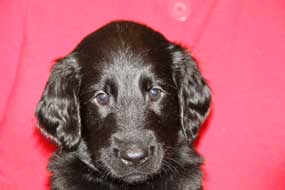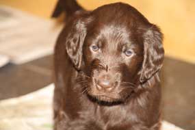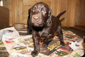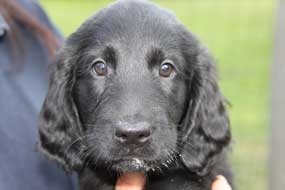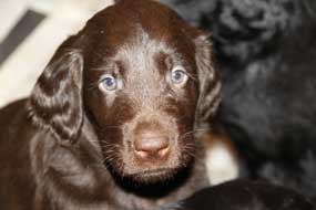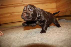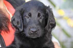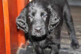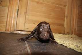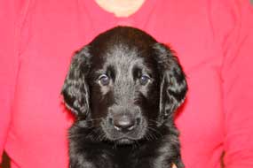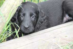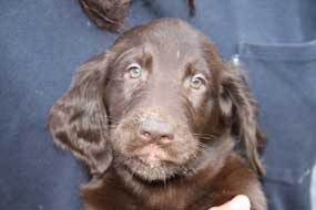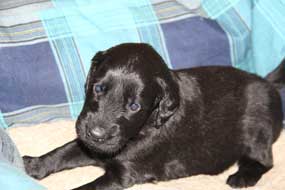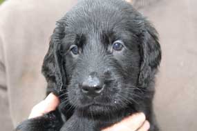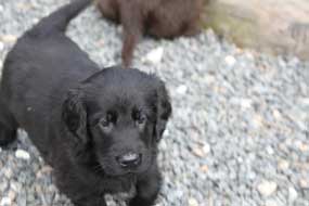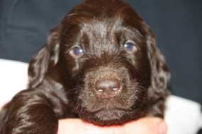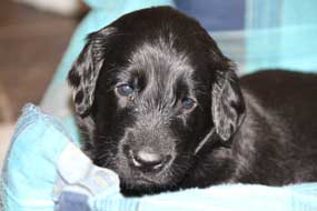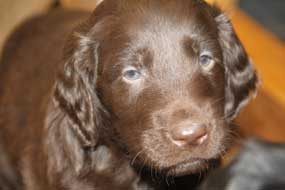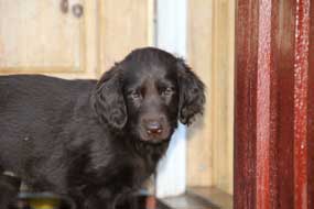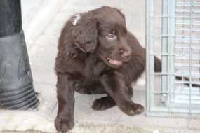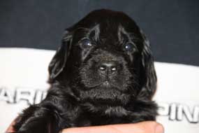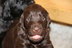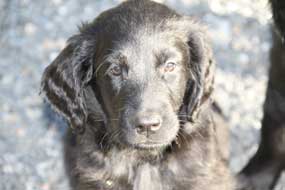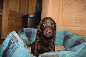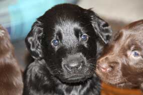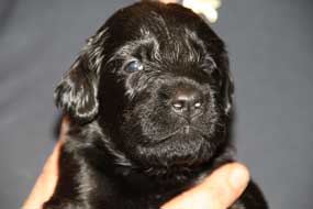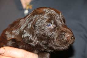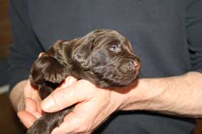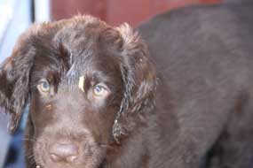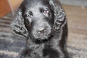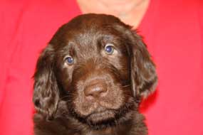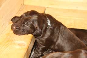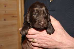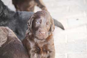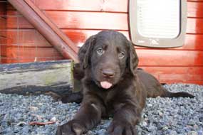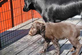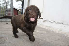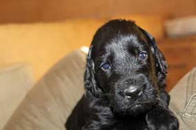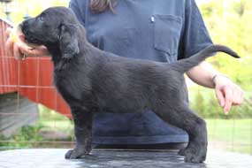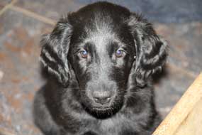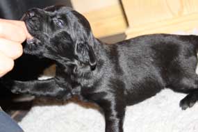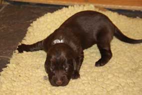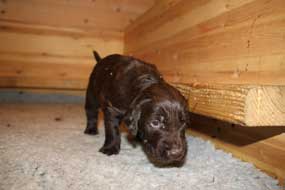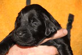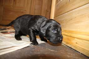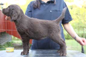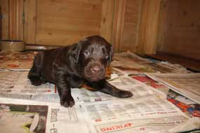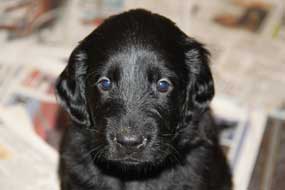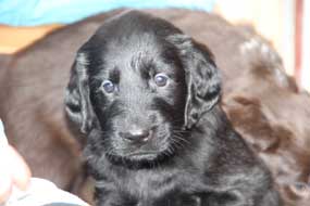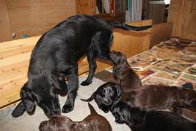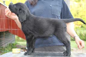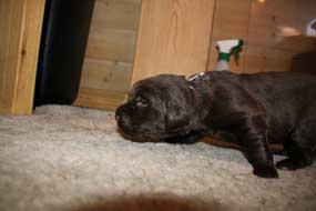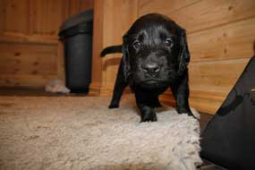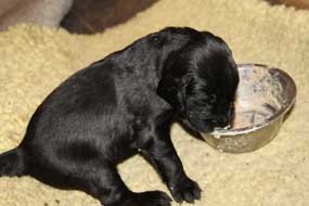 02.05.10. I dag har trolla tittet ut av døren. Men ingen har tatt steget og virkelig gått ut enda. Men spennende det var det tydelig med en ny verden bak den døren. Vi har nå halv blandet kokt hundemat grøt med Eukanuba valpetørrfor som er moset opp. det falt godt i smak. De skal jo helt over på kun Eukanuba hundematen nå etter hvert. Her er sort gutt og guttnakke.