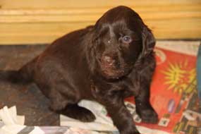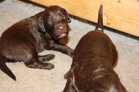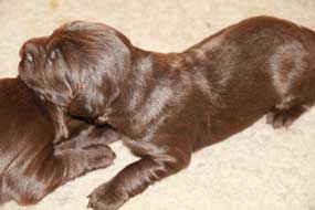 15.05.10. I helgen er Pappa Eros her på besøk. Kjempe gøy å se han igjen. Han er veldig nysgjerrig på valpene sine. I morgen skal vi prøve å få til et bilde på hele familien. Tenker det blir ganske så kaos jeg. Her er Jenterumpe og gutt rumpe.