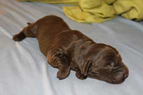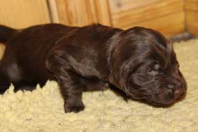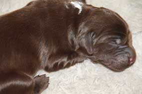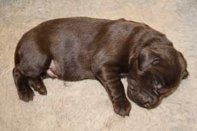 21.04.10. I løpet av gårds dagen hadde alle åpnet øynene. Så nå titter de på verden med noen aldeles nydelige blå øyne. Hørselen er også begynt å virke. Her er Tasha som har storrengjøring. Så er det jente rumpe på tur og gutt rumpe.