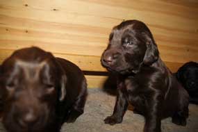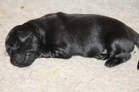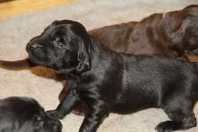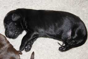 26.04.10. I dag skal små trolla få smake mat 2 ganger. De elsker den kokte hundematen. Men ser ut som noen gjørme brytere så fort de er ferdige. Nå har den første leken virkelig satt i gang. De sitter å prøver å bite på hverandre og har oppdaget at livet består av litt mer en sove og mat.Her er Sortgutt & guttnakke