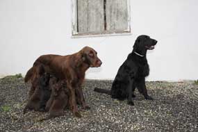16.05.10. I helgen har som sagt Eros med sin familie vært her. Det har gått kjempe bra. Han er en helt nydelig og snill hann hund. Med 6 valper i huset og 9 tisper og masse mennesker ut og inn hele tiden så har han tatt livet med stor ro. Han synes nok at Tasha var litt søtere en sine barn. De lurer jo bare på hva den dingsen som henger midt under er til Kanskje det er noe melk i denne. Her er sortjente og jente nakke Så er det Tasha Eros og alle trolla og Eros ute med sine barn.