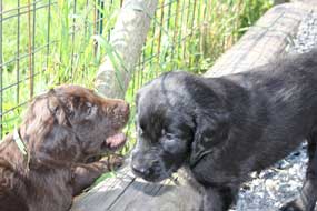 08.05.10. I dag er vi i Kristiansand på utstilling ,mens Marita og trolla koser seg hjemme sammen med Tasha og Grappa. Trolla har det fint og er ute et par ganger om dagen nå. Dette er noe de setter stor pris på. Men helst med Mamma Tasha i nærheten. Verden er foreløpig veldig stooor.- Her er S gutt og gnakke.