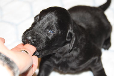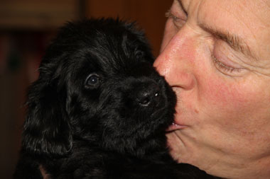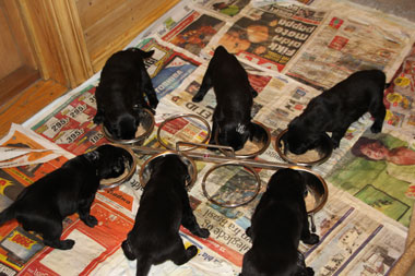 30.12.10. I går kveld hadde trolla besøk igjen. dette setter de stor pris på. Det prøves ut om fingre er fulle av melk og noen vil bare sitte i fanget å kose. Som GHB som slo seg til på fanget til Clare. Trolla fikk 2 måltider i går. Med egen skål og tut og søl. Første gangen var masse gris men faktisk i går kveld så stod to og to å spiste ganske så pent ved siden av hverandre. Jeg måtte så klart følge med ,men jammen var de flinke. Vi blåser i fløyten når de skal ha mat. Da kommer de på innkalling på fløyte når de flytter når de er 8 uker gamle. Det er ganske så fascinerende at er man flink til å gjøre dette med valpene så har man den første innkallingen inne så tidlig :-) Bilde 1 er GHB & Clare. Så er det nakke & rumpe som spiser. Bilde 3 er guttnakke og bilde 4 er gutthale.