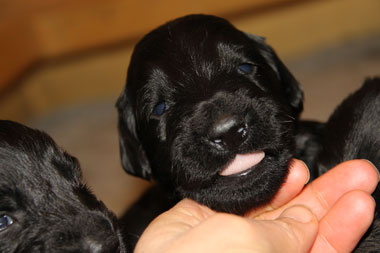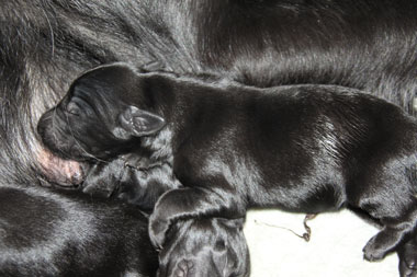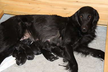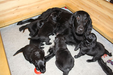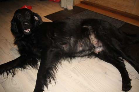 10.12.10. Nå er klokken blitt 07.00. Vi har nå fått 6 gutter så her er gutte klubben grei :-) De er store og fine. Alle har blitt født sprell levende og kastet seg på puppen med en gang. Det er så utrolig deilig med slike valper. Vi mangler nå morkaken på den nest siste valpen. Den fulgte ikke med. Tror det er tomt for valper, men hun kan gjemme noen innunder ribbene og har fremdeles ikke roet seg. Men det mangler jo også en morkake ¨så det kan være den som ligger å trykker og vil ut. Vi får bare vente å se