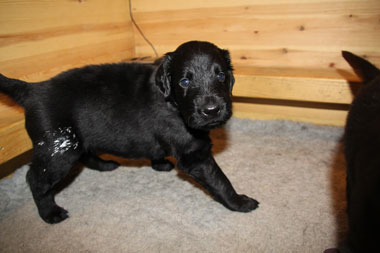 27.12.10. Strømmen var borte i 12 timer i går. Da er man glad man ikke sitter i en valpe fødsel. Vi har back up med gassovn og den var det godt å sette inn på valpe rommet etter hvert som kulda begynte å krype inn av veggene. Så trolla led ingen nød. Strøm aggregatet i vogna måtte også frem slik at Kjell fikk varmet vann på vann kokeren til kaffe. Man skjønner hvor godt man har det når man mangler det som man tar som en selvfølge. Trolla skal få sin første smak med kokt hundemat i dag. Det blir spennende å se hva de synes om. Her er Chrmen som bare måtte en tur å sjekke de små,Så er det guttnakke og gutthale.