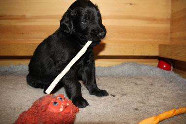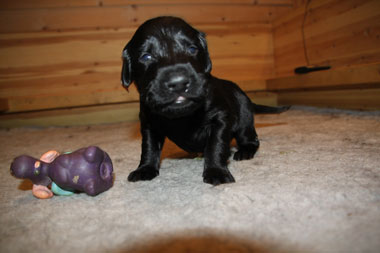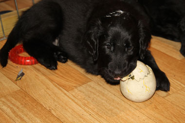 05.01.10. Trolla er bare helt til å spise opp. Det er så utrolig gøy å sitte å se på de med alt det rare de gjør. Leken er så veldig utviklene ,og den er fullt i gang nå. Her lærer man hvor hardt man kan tygge og bite på naboen og når man burde stoppe før det bli alvor. Man kan sammenligne det med sandkasse leken til oss mennesker når vi er ca 1-2 år og sitter å slår bøtta og spaden i hodet på naboen. Man får seg jo fort en tilbake hvis man treffer godt og da lærer vi etter hvert at dette var kanskje ikke så lurt :-)Det samme gjelder valpene. Når man biter for hardt så gjør det vondt og den får man igjen. De lærer nå hvordan de skal oppføre seg mot hverandre og når man burde stoppe.:-) Her er gutthale og guttnakke.