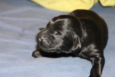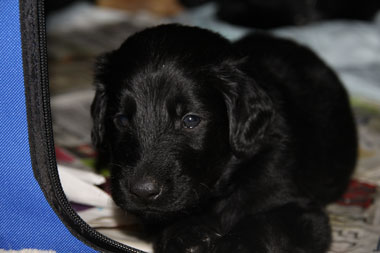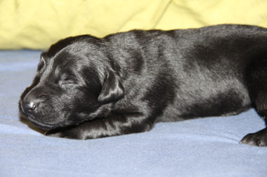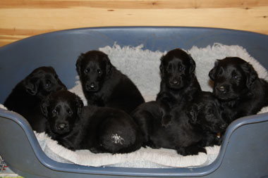 10.01.11. I går var det masse kos og besøk hos trolla. De var helt slutt kjørt på kvelden :-) Alle sov og jeg kunne også krype til køys til klokken 22. Nå er øyen fargen så vidt begynt å bli grå brun. De ser jo ut som små teddy bjørner nå alle sammen. De er veldig rolig og avbalanserte ,det er ingen tøffe eller super pyser. Ganske så like i personligheten det vi ser nå. Et ganske så behagelig kull med noen søt noser som bare er helt til å spise opp når de kommer viftende på sine små haler.Her er alle i sin nye seng,den falt i smak.Så er det GVB & Rumpe.