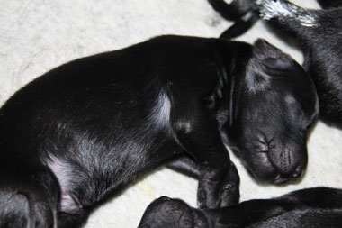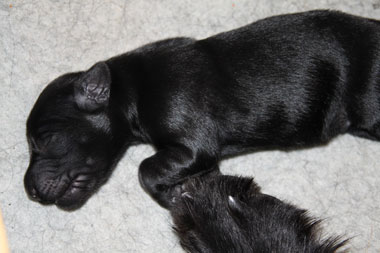 13.12.10. 3 døgn gamle i dag. De legger godt på seg alle sammen. Ørene er så små enda men man ser at de så vidt har begynt å vokse mer. De skjønne små trede putene er vel det jeg er aller mest fascinert av. Det er jo helt likt Nalas pote bare så bitte bitte liten. :-)Nala var en del i stua sammen med de andre hundene i går. Valpene spiser til de sovner, får rumpevask av Nala så sover de ca 2 timer før de er klare for ny mat. Når Nala kommer inn å legger seg ned da så er det liv. Om å gjøre å finne en pupp først. Det virker som det er veldig sterke og fine valper. Blir kjempe spennende å følge de fremover. Her er gutt merket hode som ligger og sover god og mett. så er det gutt merket høyrebak en aldri så liten tur i sengen min :-)