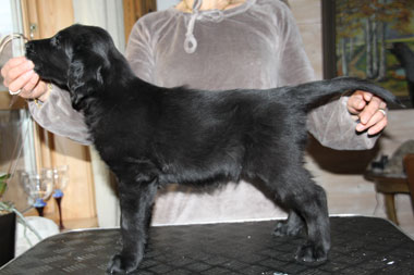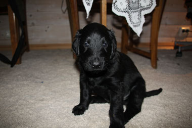 10.02.11. I går flyttet også Leo som han nå heter til sitt nye hjem. Så nå kan du ta det helt med ro Ann Kristin Han har også fått en familie som er kjempe flotte å bo hos. Det er jo gøy da når tidligere valpekjøpere følger nøye med å har helt vondt av at det er en som ikke har fått sin egen familie. Da har man hjerte på rett plass. Men det er som Kjell sa når vi gikk en tur med de voksne hundene etter at Jonas/Leo var reist . Det er FFFF at man blir så altfor glad i de små trolla. Men det er jo slik det skal være. Den dagen vi ikke har følelser for valpene våres. Da må vi slutte. Alle 6 guttene har når fått gode hjem. Gleder oss allerede til å treffe de igjen på første valpetreffet. Husk at det er bare å ringe hele tiden når dere trenger råd og hjelp med trolla våres :-) Her er et bilde av Leo/Jonas i går formiddag. :-)
