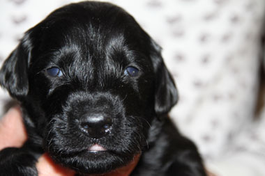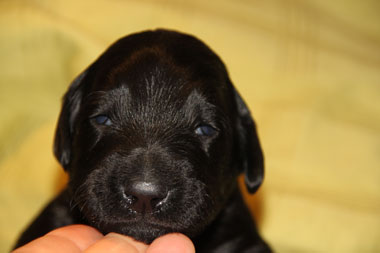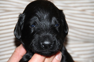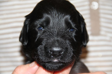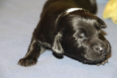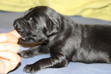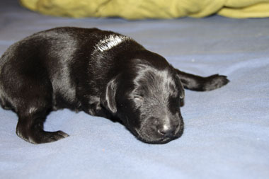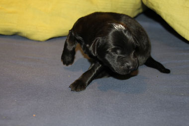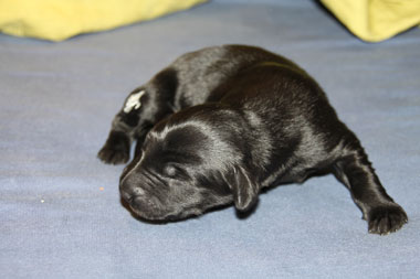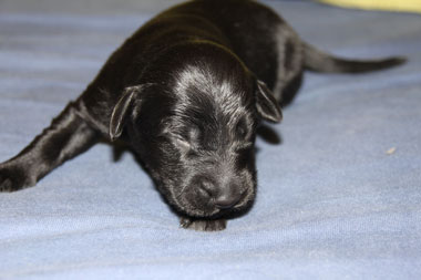16.12.10. 6 døgn gamle er trolla blitt nå. Øyen sprekkene er blitt mye mer markerte det siste døgnet. Så gleder oss masse til de åpner de skjønne små gluggene. Øynene er blå de førstee ukene før de går over i en grå nyanse for så å bli nøtte brune. De er bare til spise opp når de titter på verden med nydelige blå øyne. Her er gutt merket hode og gutt merket høyrebakfot.