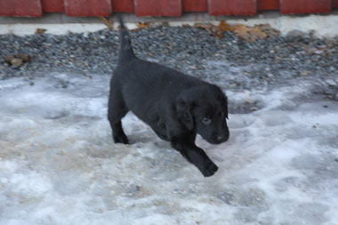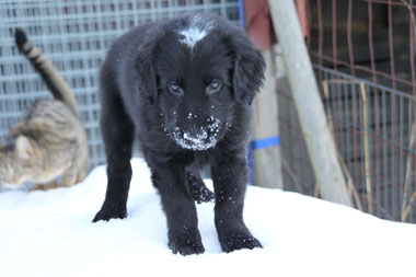 27.01.11. Trolla elsker å leke ute. Snø er tingen. Godt vi har varme lampen å sete på når de kommer inn slik at de får fort varmen igjen. De har virkelig begynt å skjønne at det lønner seg å prøve å få kontakt i forhold til lydighets øvelser nå. Siden vi begynte så smått å øve litt har de nå begynt å sette seg foran oss å kikke som for å si kom igjen .La oss gjøre no nå :-) Her er Gutthode -Leo Så er det GHB som skal hete Luke.
