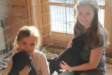 24.01.11. I natt har vi hatt fødsel i huset igjen. Trolla sov seg igjennom det meste Kjell var ute en tur med de ved 2 tiden i natt. Ellers så har det vært ganske så stille. I år hadde de masse besøk. de lå rett ut og måtte få middagen sin senere en vanlig etter på. De var så trøtte :-) Her er tante barna våres Malene og Sarah som valpebarnepassere. Så er det Gutt hode og gutthb.