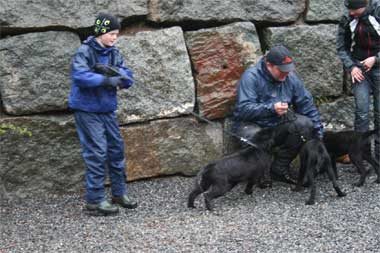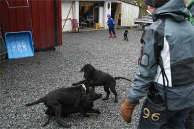 Etter lunsj og en liten shopping fra tempo hundebutikk så viste vi feltsøk ferdig utlært med Nikita. Valpene var alt for fulle i hodet med det som vi hadde holdt på med før lunsj ,så dette må prøves på hjemme. Lhea og Kjell viste hvordan vi starter innlæringen slik at alle har sett hvordan det gjøres. Valpene fikk lov til masse lek og sosial trening da vi var ferdig . Det takket de ikke nei til :-)