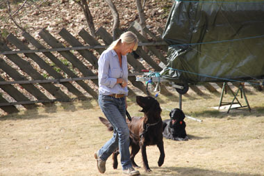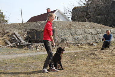 Etter felt søket så gikk vi hagen å trente klasse 1 øvelsene. Her var det faktisk ikke mye å pirke på. Som tidligere skrevet så var begge hundene godt i gang med alle øvelsen og var veldige lydhøre og flinke. Fortsett med hundene slik dere har gjort til nå. Dere har kommet kjempe langt begge to. Vi var igjennom på plass, bli sittende ,bli liggende, hopp over hinder , og passerings øvelser med blant annet bli og begge kommer som noen skudd på innkalling også i lek med andre hunder. Supert. :-)