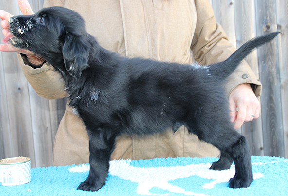 16.10.25. Den første spede leken har begynt . Så i går fikk de masse leker å holde på å sutte på å bite i også . Det var spennende det. Katten Katia tok seg en undersøkelse runde oppi valpekassen også i går. Kimmie er heldigvis en veldig snill hund så hun stoler helt på husets katter :-)Saga var en kjapp tur innom på besøk i går også. Hun er nå 45 dager på vei å er god å rund. Hun fikk være med litt jakt trening i går. Å er kjempe sprek . Men man ser jo at magen begynner å hemme henne mer :-) Her er jente rumpe og gutt rumpe