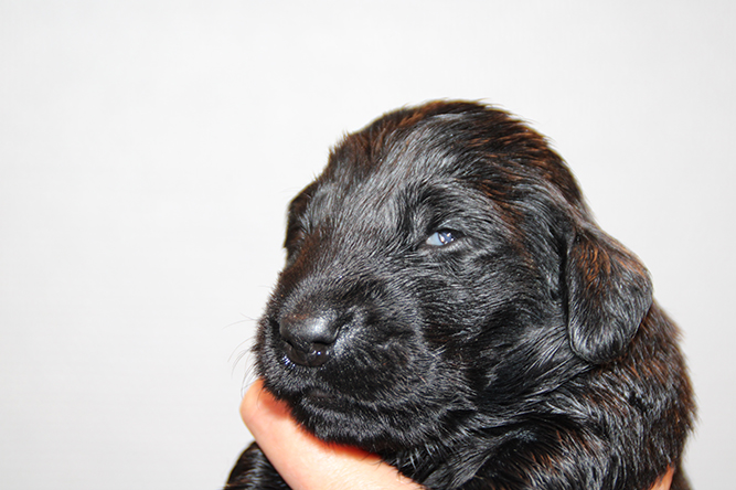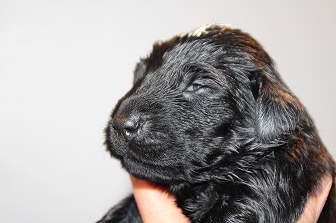 12.10.25. Klo klipp gikk så det suste i går. De sitter ikke akkurat stille skal jeg love men dette er en må ting så det må gjøres :-) De fikk smake litt valpegrøt 3 ganger i løpet av dagen i går å det er så godt. Nå åpner snart hørslene seg også. I går kveld tror jeg faktisk gutt venstre bak begynte å høre litt lyder. Han satt å så forskernde rundt seg når vi pratet. Masse som skjer hele tiden i utviklingen nå. Her er Gutt rumpe og jente nakken.