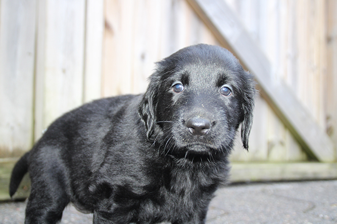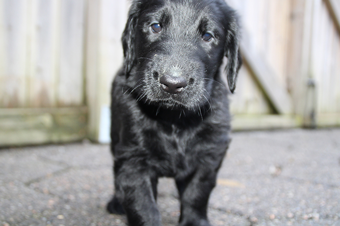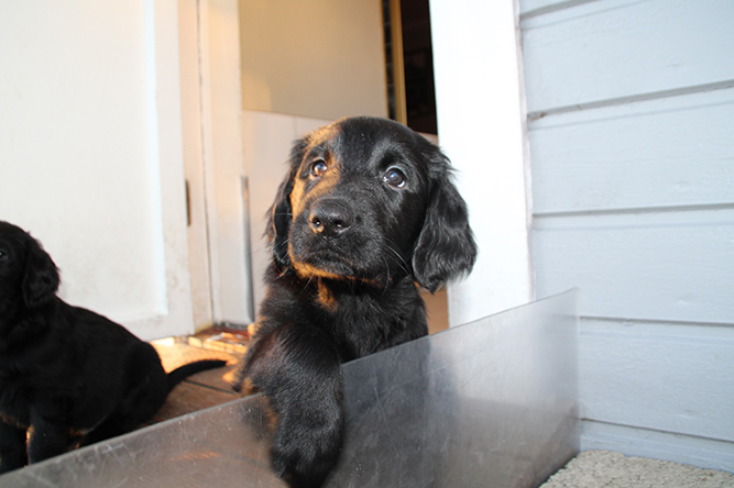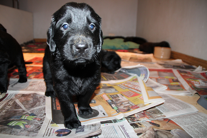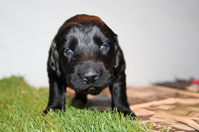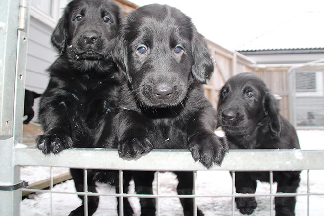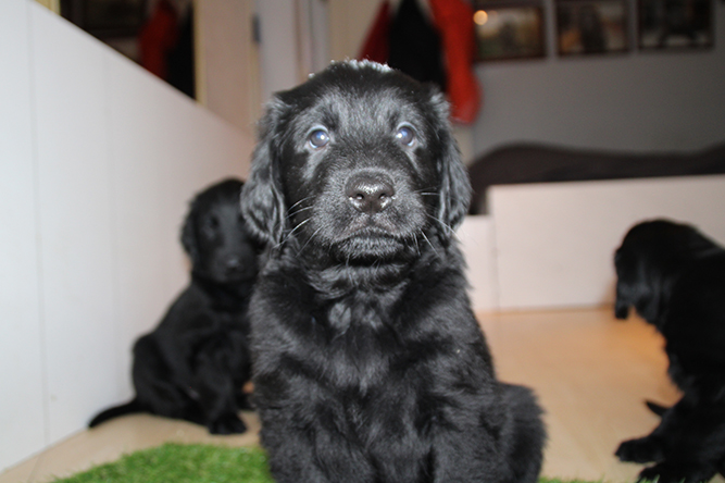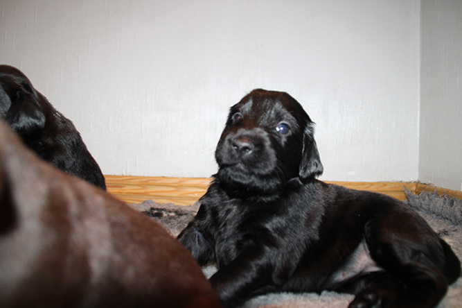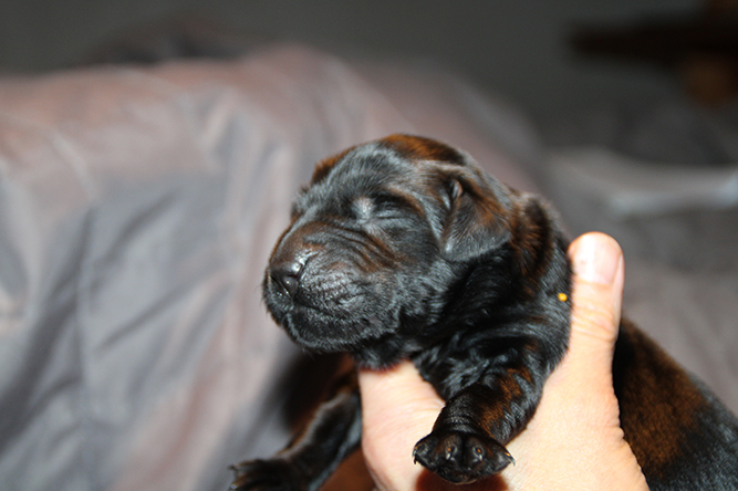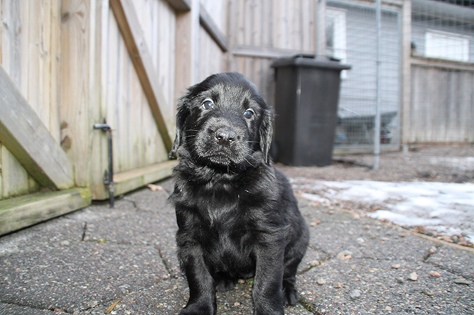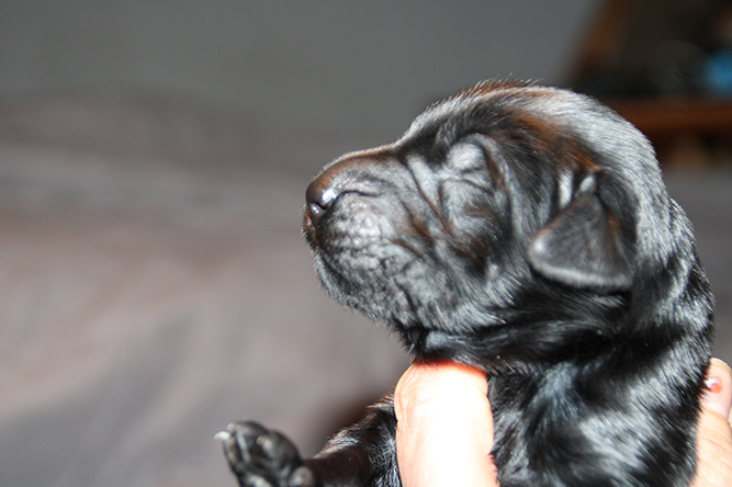 30.01.25. I går mistet vi Lava. Hun var dessverre ikke utviklet nok så det gikk ikke mer :-( Kjempe trist. De sorte gullene er blitt så flinke nå til å løpe ut for å gjøre i fra seg når døren går opp. Vi har minket bra på aviser på dag tid så nå er det bare noen rett ved døren. De kommer nå når vi blåser i fløyten. Og er blitt så flinke. De kosa seg med besøk i stua i går. Og når vi skulle inn på valperommet igjen var det noen som klarte å gå hele veien selv :-) I går kveld prøvde vi å gi eukanuba uten å mose den til grøt. Å jammen gikk det ned så det suste. Så nå begynner det virkelig å bli små flinke hunder her :-) Jeg må jobbe ekstra i dag pga sykdom men Inger Johanne passer hus å hunder. Så alle er i trygge hender her :-) Her er jente rumpe /Lunaog gutt rumpe/Atlas