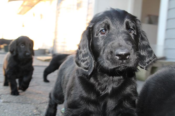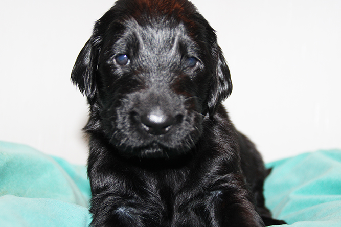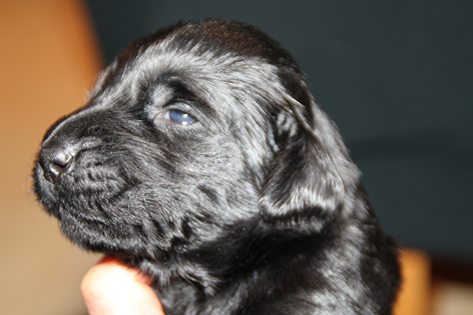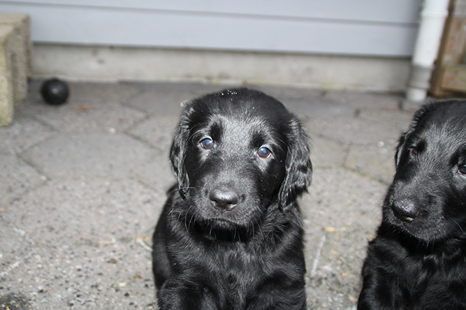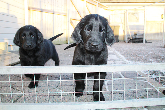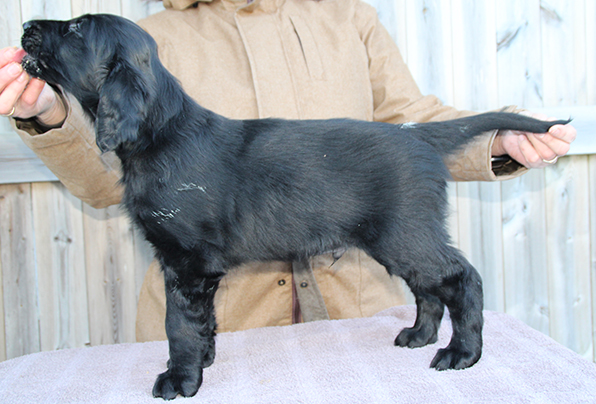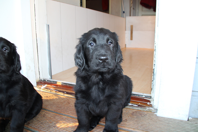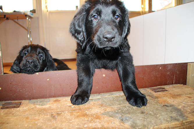 09.02.25.Trolla stor kosa seg med Elin her i går å besøk når vi var borte i går. :-) TUSEN TAKK Elin for en super jobb med de små :-) De hadde fått masse oppmerksomhet og kos :-) I går kveld fikk de være med oss på kjøkkenet når vi spiste middag å det var også gøy. Det var en FANTASTISK dag på utstilling i går. Ecco som onkel ble 2 i champion klassen med CK og 2 beste hannhund totalt av over 80 flatter . Og lille Izie ble nr 1 i junior klassen med CK og fikk Junior certet og junior Cacib. Aia ble nr 2 med CK i bruks hund. Qule Birk ble nr 2 i junior klassen med CK . Samt flere flotte bedøminger av Av- Zan-Iaz hunder :-) CK er en forkortelse av premien Championat kvalitet for de som ikke vet det :-) Så vi var strålende fornøyde. Ikke nok med det vi fikk svaret på Hofte sjekken vi var på med med Izie og Velma hos veterinæren på torsdag . Begge små jentene er HD fri A :-) I dag reiser Kjell på utstilling i retriever klubben med en gjeng mens jeg holder hus her hjemme med besøk gjennom dagen :-) Det er morsdag i dag også så mamma og søster Torun kommer på litt kos midt mellom besøkene. Så dagen er full med mye gøy i dag også :-) Her er jente hode /Frøya og jente rygg /Molly.