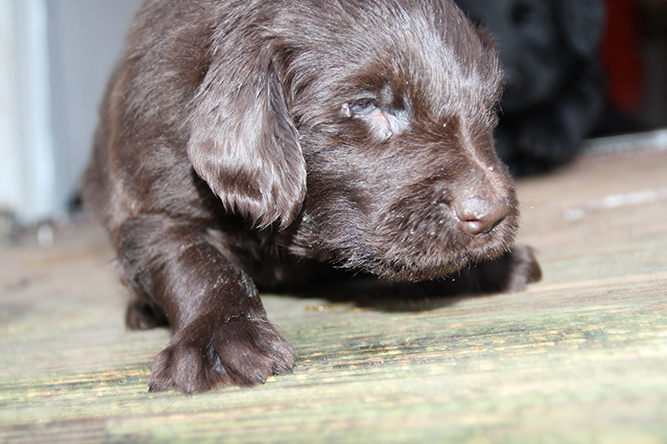 02.01.25. Nå er det to troll som glipper med øynene. De første dagene er det vanskelig å ta fine bilder av de små. De kniper fort igjen når det blitzer :-) Øynene er knall blå i starten før de etter hvert går over til en grå nyanse for til slutt å bli nøttebrune :-) Dessverre klarte de ikke å finne Mistie i går. De lette helt sykt masse og hva rover det meste i nærorådet.I dag er det nye folk som skal lete å vi håper virkelig hun blir funnet. Men etter som dagene går et kjangsen mindre og mindre for å finne henne i live i kulden. Jeg er så lei meg her hjemme. :-( Når vi får valper blir det knyttet bånd til hver og en ,å vi vil jo helst at de skal bli gamle fine hunder som får et langt og fint liv. Det er våres hjertebarn alle sammen ,så dette er så vondt .Som sagt er det ikke så lett å ta fine bilder av de små når det blitzer så kniper de øynene sammen :-) men her er jente høyrebak og Brun jente :-)