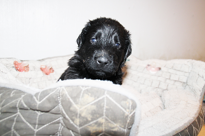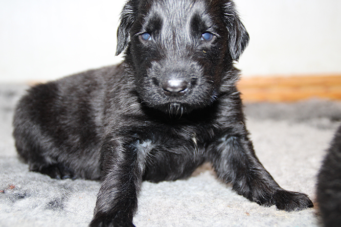 10.10.25.En roligere natt var det nå Ingen kolikk :-) Trolla fikk større plass i går å det satte de stor pris på. Det er helt utrolig når man ser så små valper som faktisk nyte myke hunde senger . De staber å går men jammen klarer de å legge seg oppi den :-) Alle har fått øyne å er nå helt til å spise opp. Det er  foreløpig vanskelig å få tatt fine bilder Men det kommer når de venner seg til alt lyset :-) De fikk smake litt valpemouse i går. Det smakte godt det . Her er Gutt hode og gutt høyrebak